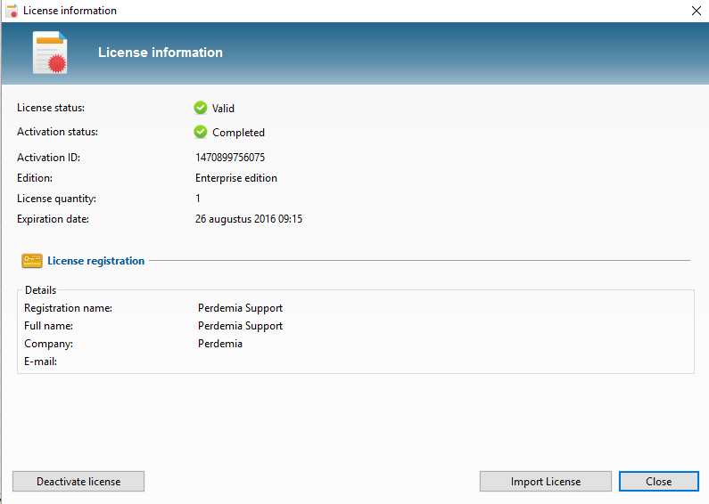 A trial license allows you to test a full version for 15 days. You will receive a license file by e-mail that can be imported into the application: